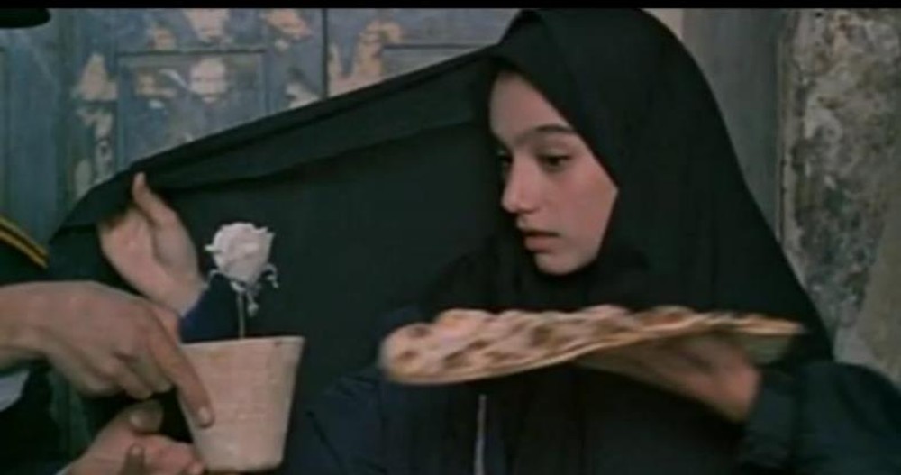 Naturally, they both play themselves in A Moment of Innocence, but there is a film-within-a-film structure because the plot revolves around Makhmalbaf and the ex-policeman trying to make a film about the violent event which brought them together. Each of them first finds and then mentors a young actor to play their respective youthful counterparts. Yet there comes a time when the two young actors stop acting and simply “become” young Makhmalbaf and the young ex-policeman, and as always in the NIC it is seamless. But this time when the stabbing is set to happen, the two young men instead exchange a flowerpot and a piece of bread, rather than a gun and a knife. The regrettable events of the real past are allowed to erode into a symbolic and poetic re-imagining in Makhmalbaf’s vision, although we are made painfully aware that rewriting the past is possible in cinema, but not in reality. It’s a moving ending, made all the more so by the collaboration throughout the film of the man Makhmalbaf had stabbed, the two now being reconciled. In its themes of different perspectives (in this case how Makhmalbaf and the policeman each saw the event differently) and of the subjectivity of truth, A Moment of Innocence is one of the most modernist, perhaps even post-modernist of NIC films.