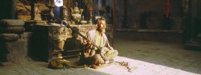 Chen Kaige’s fourth feature film takes place in some unspecified timeless past, somewhere on the vast deserts of Northern China. Its main characters, two itinerant lute players, one old master and his pupil, may both be blind but Chen’s epic is itself visually spectacular, carving some of the most stunning images he’s ever set to film out of the harsh but beautiful scenery. This makes it tempting to slot it as the missing link between his early, rural-set dramas of spare beauty with palettes of ochre and blue for the land and sky dominating the scenery (Yellow Earth, King of the Children), and the later big-budget spectacles relying on extravagant visuals and musicality (Farewell My Concubine, and many of his subsequent films).