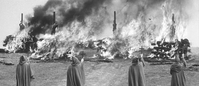Gothic etchings, a ballad about the coming of the Grim Reaper, a monk submerged in shadow warning us in harsh whispers of the dangers of the female sex: “Through woman came Sin into the world…”. This is the sequence of images and sounds that opens Otakar Vávra’s Witchhammer, bracing us for its twisted tale of witch-hunts, trials, torture and sexual repression in gorgeous black-and-white widescreen cinematography.