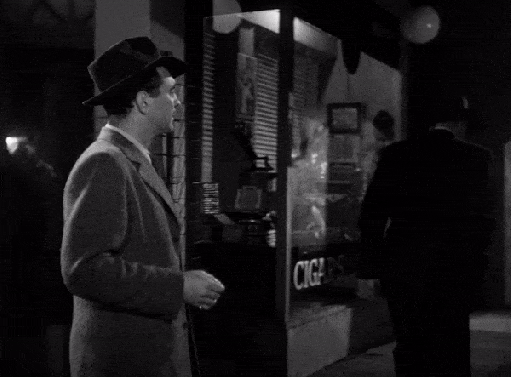 All we know is that the Swede started a new life doing what he’d rejected at that crucial crossroads with Sam Lubinsky: an honest living, in this case working at a petrol station in the town of Brentwood. This fact becomes curiouser when we remember that in another seminal film noir, released just one year later, Out of the Past (Jacques Tourneur, 1947), Robert Mitchum’s character similarly attempts to flee from his prior missteps by moving to a small town and working at… you guessed it, a petrol station. What is it with film noirs and petrol stations?